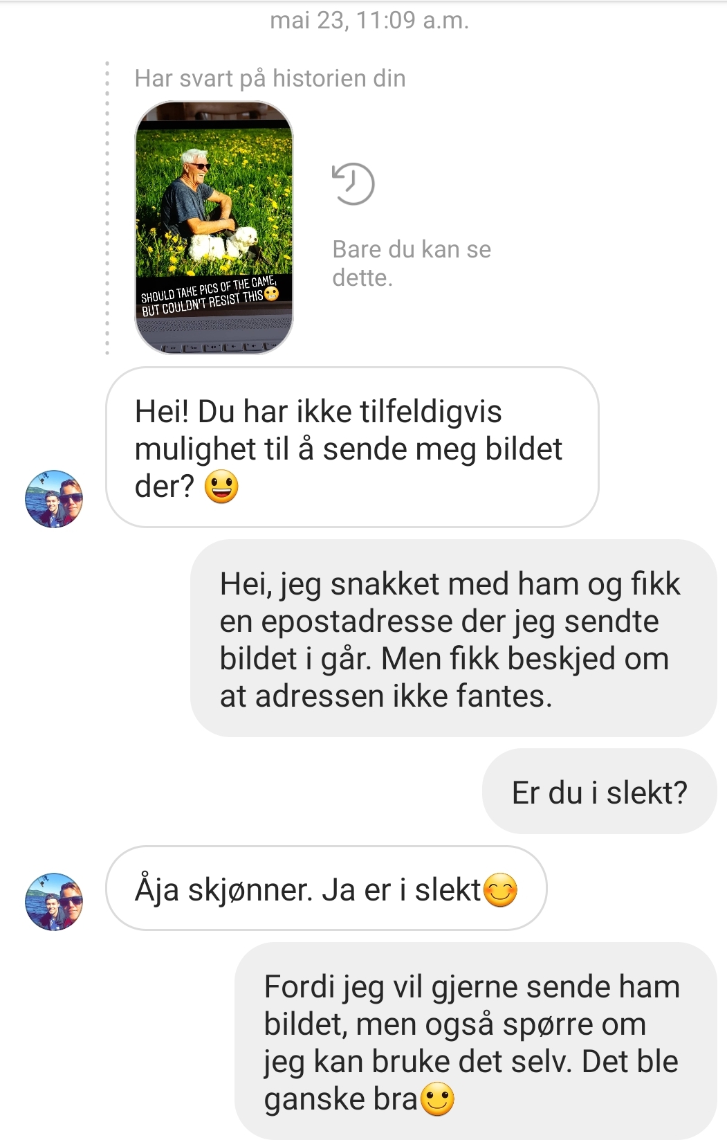 Det viste seg at Erlend fulgte meg på Instagram og tilfeldigvis så på min instastory. Nå var det jo slik at Erlend faktisk spiller for Ranheim og spilte kampen. Kanskje ikke så rart at bestefar så på.