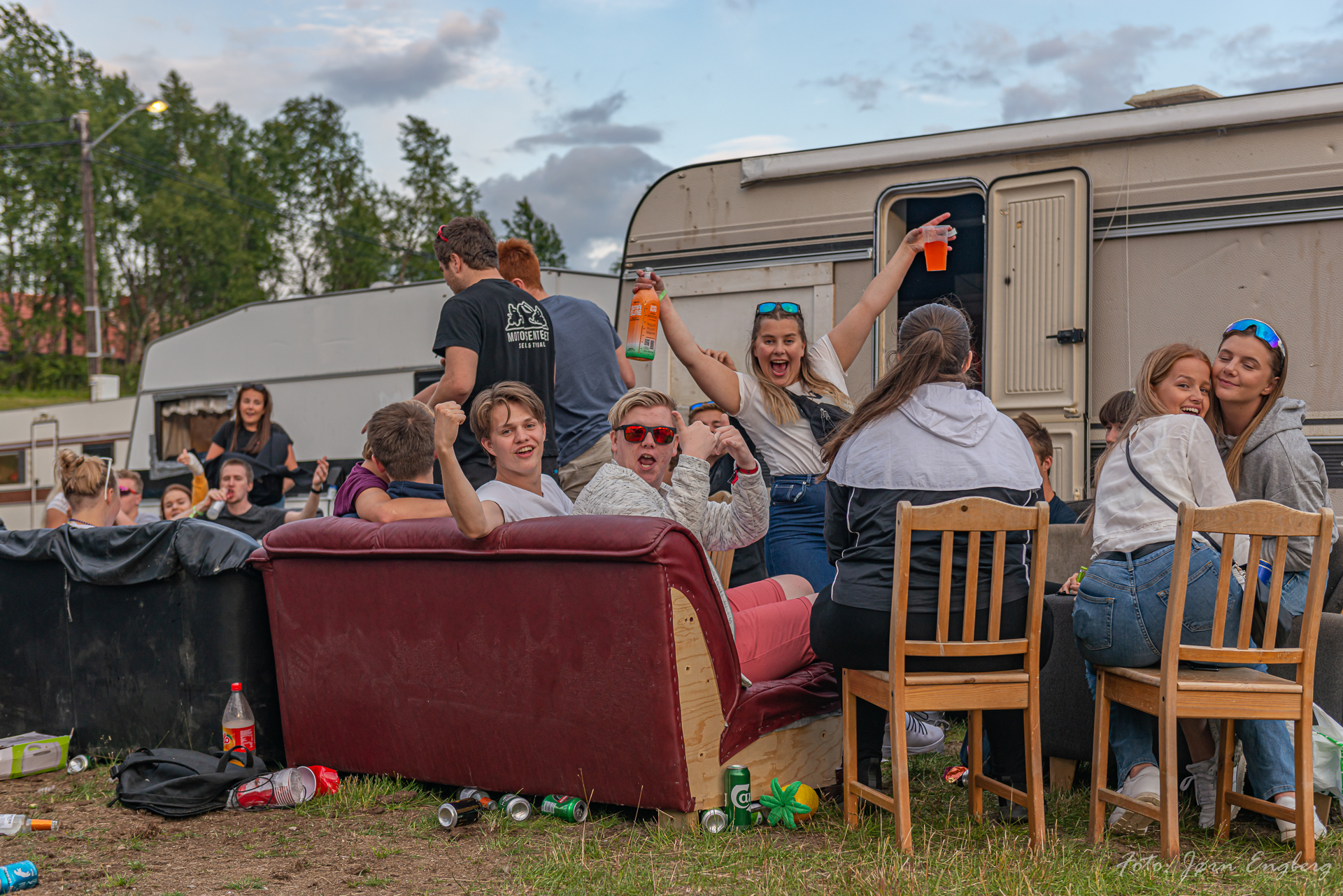 Når jeg så gikk litt rundt på «campus» fikk jeg godfølelsen. Ungdommene hadde stilt opp med campingvogner, busser og telt. Fylt med alskens godsaker og feststemt ungdom. Og smil. Og latter. Det var rett og slett en fornøyelse å gå rundt å hilse på folk og ta bilder. Joda, det var da noen som hadde fått litt vel mye å drikke, men flesteparten hadde det trivelig. Ja rett og slett trivelig. Hele området oste av glad feststemning. Jeg vet ikke helt hvordan jeg kan formulere dette bedre. Det var dansing og prating og selvsagt høy musikk. Og stemningen, ja den var god.